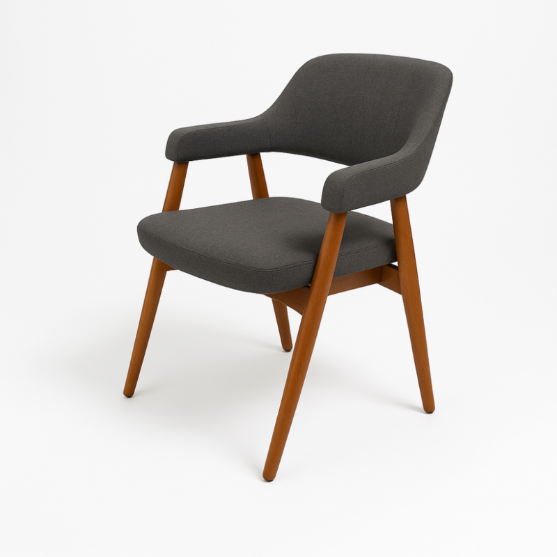 يأتي الكرسي بهيكل قوي وأرجل خشبية متينة مع تفاصيل معدنية أنيقة تضيف لمسة عصرية إلى التصميم، مما يجعله مناسباً لمختلف أنماط الديكور الحديثة.