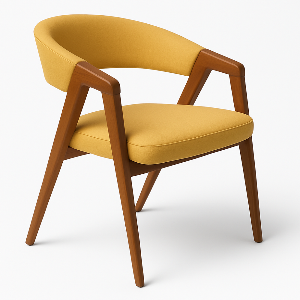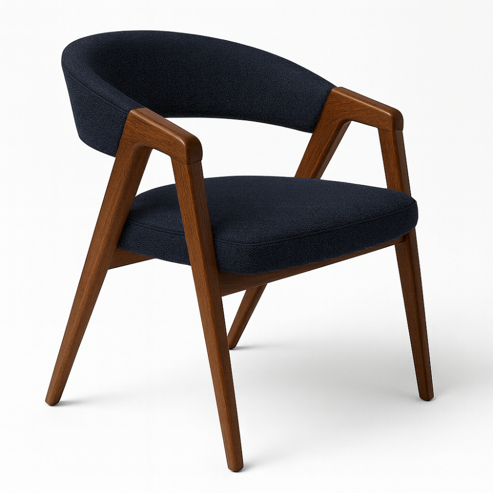 يتميز الكرسي بهيكل خشبي متين عالي الجودة مع مقعد مبطن يوفر راحة أثناء الجلوس لفترات طويلة. كما أن التصميم الأنيق مع مساند جانبية مريحة يجعله مناسباً للاستخدام في مختلف المساحات الداخلية مثل المقاهي والمطاعم وصالات الضيافة.